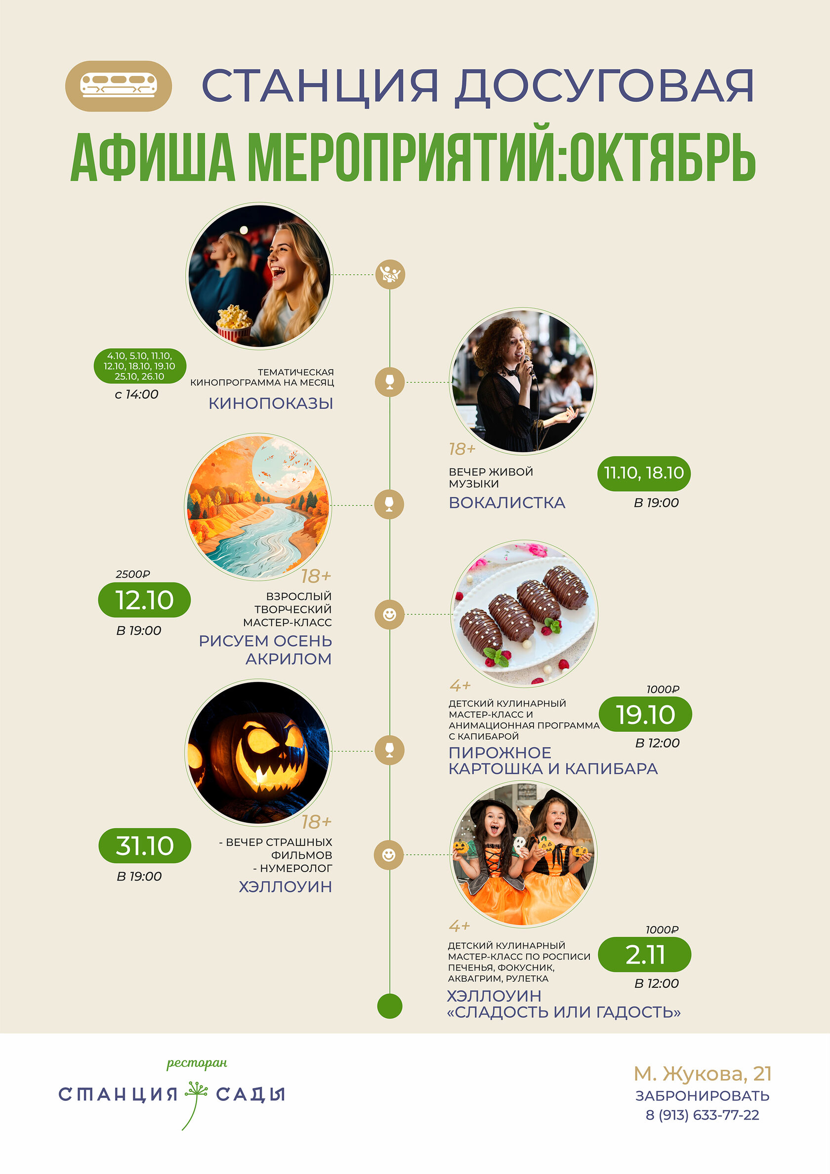🌐 Выбирайте мероприятия и бронируйте столик через по телефону 8 (913) 633-77-22